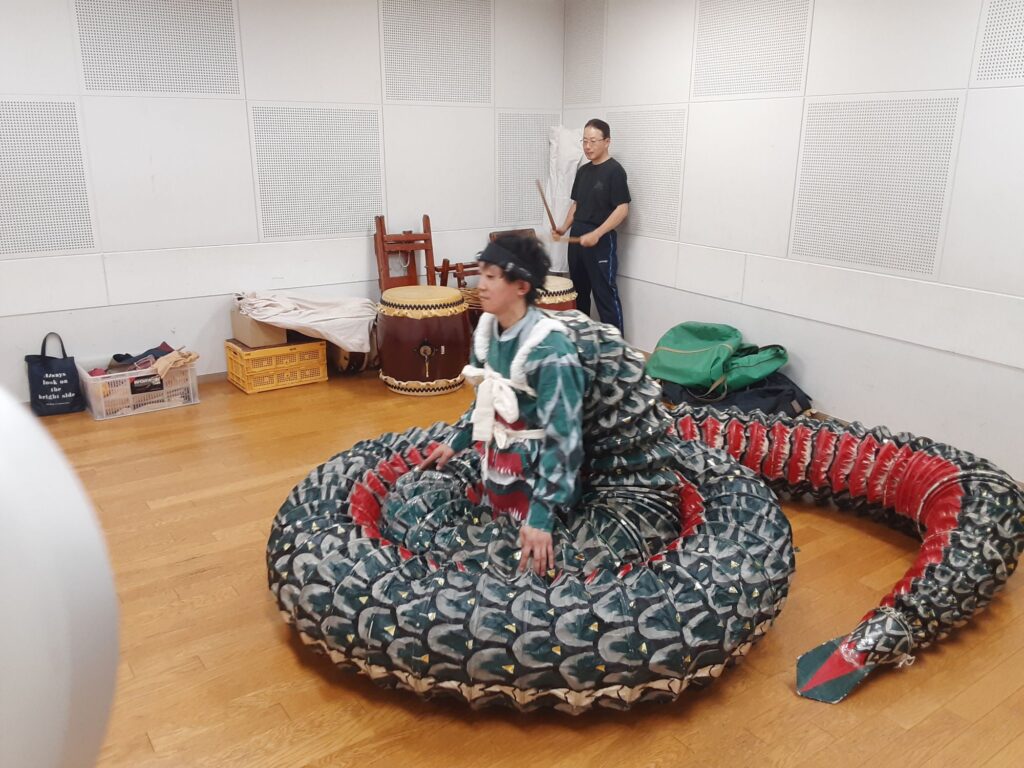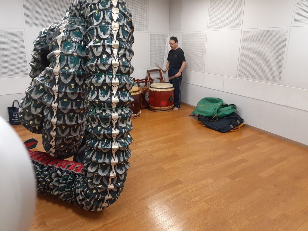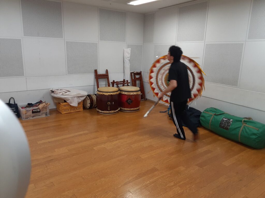 今日は、メンバー一人と私の2人で練習しました。指笛、エイサー、八丈島太鼓、荒馬踊り、三宅島太鼓、仮面太鼓そして大蛇、ぶち合わせ太鼓、傘踊り、秩父屋台囃子、独楽回し、ソーラン節の練習をしました。