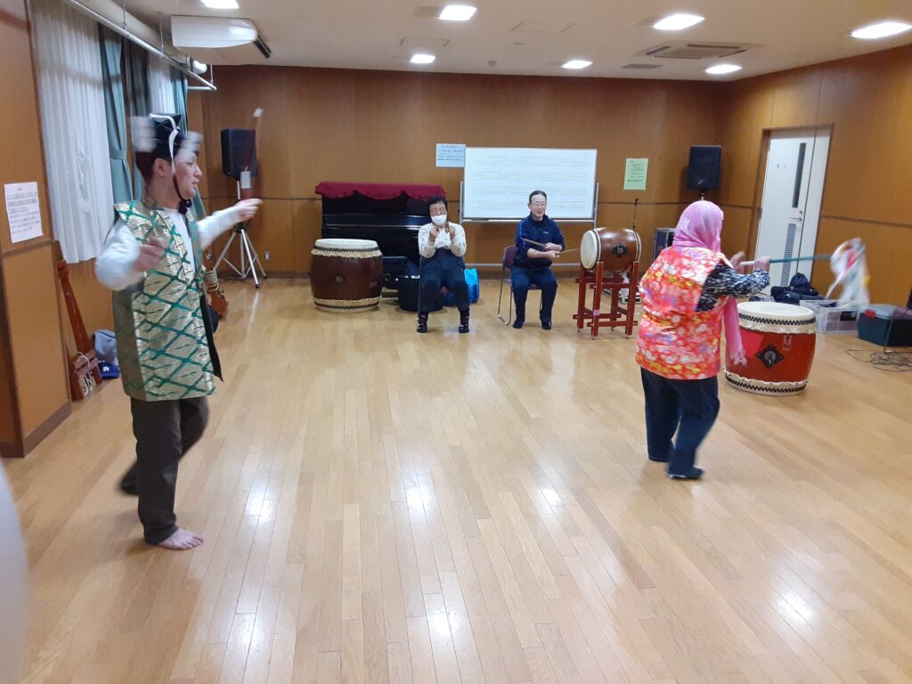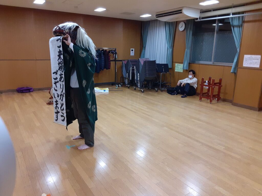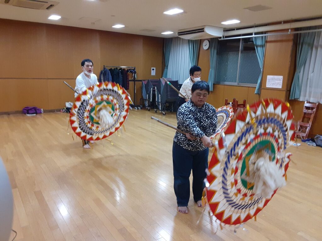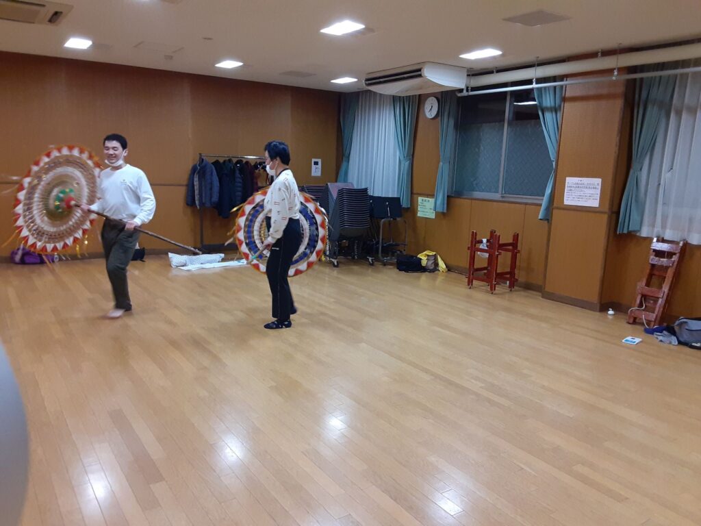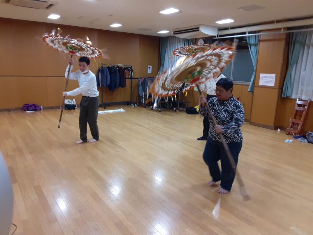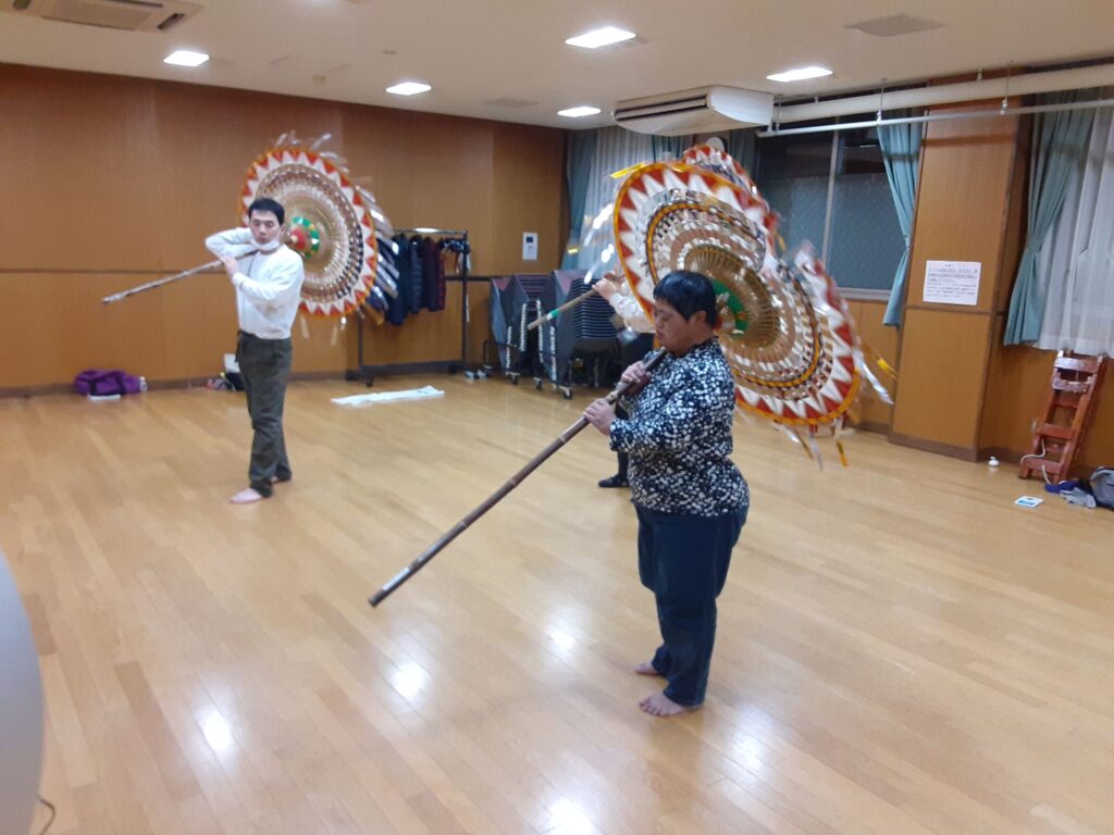 今日は、私を含め4人で練習しました。指笛、エイサー、傘踊り、獅子舞(一人立ち)、仮面太鼓そして大蛇、秩父屋台囃子の練習をしました。