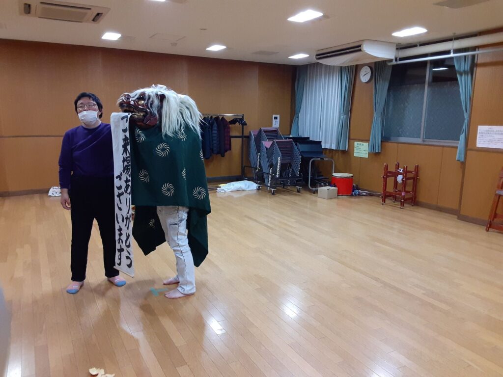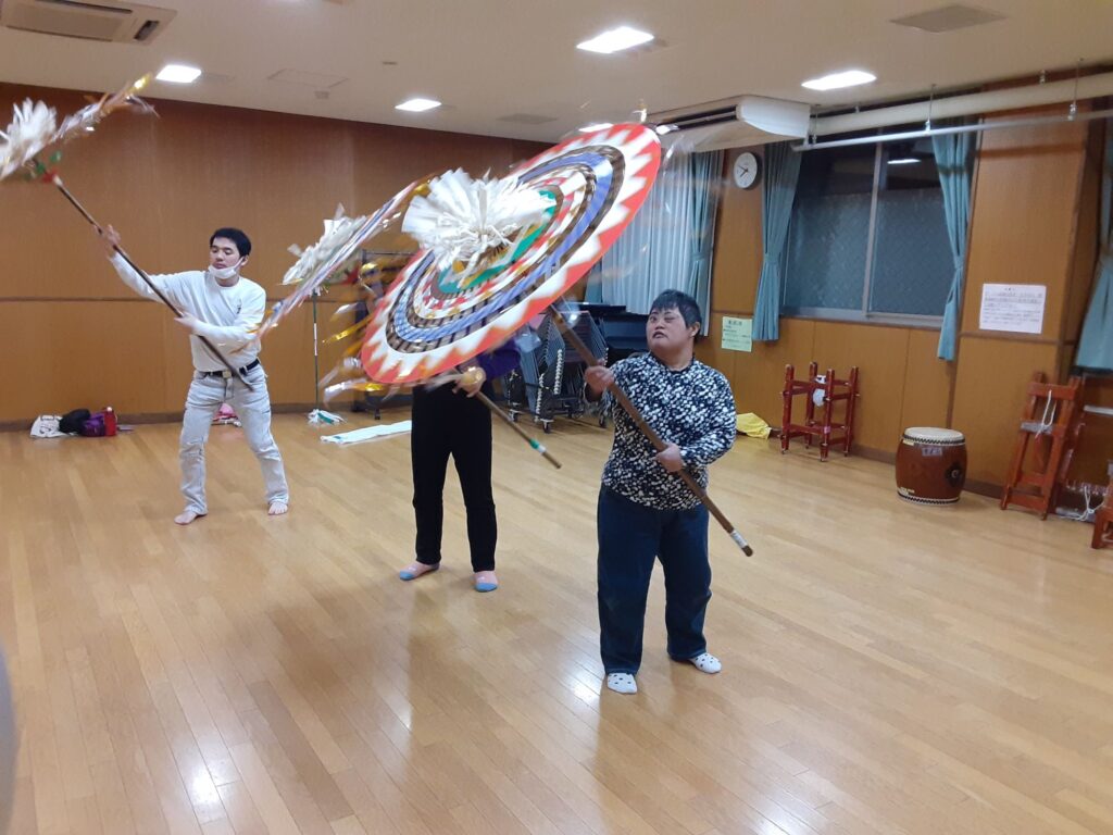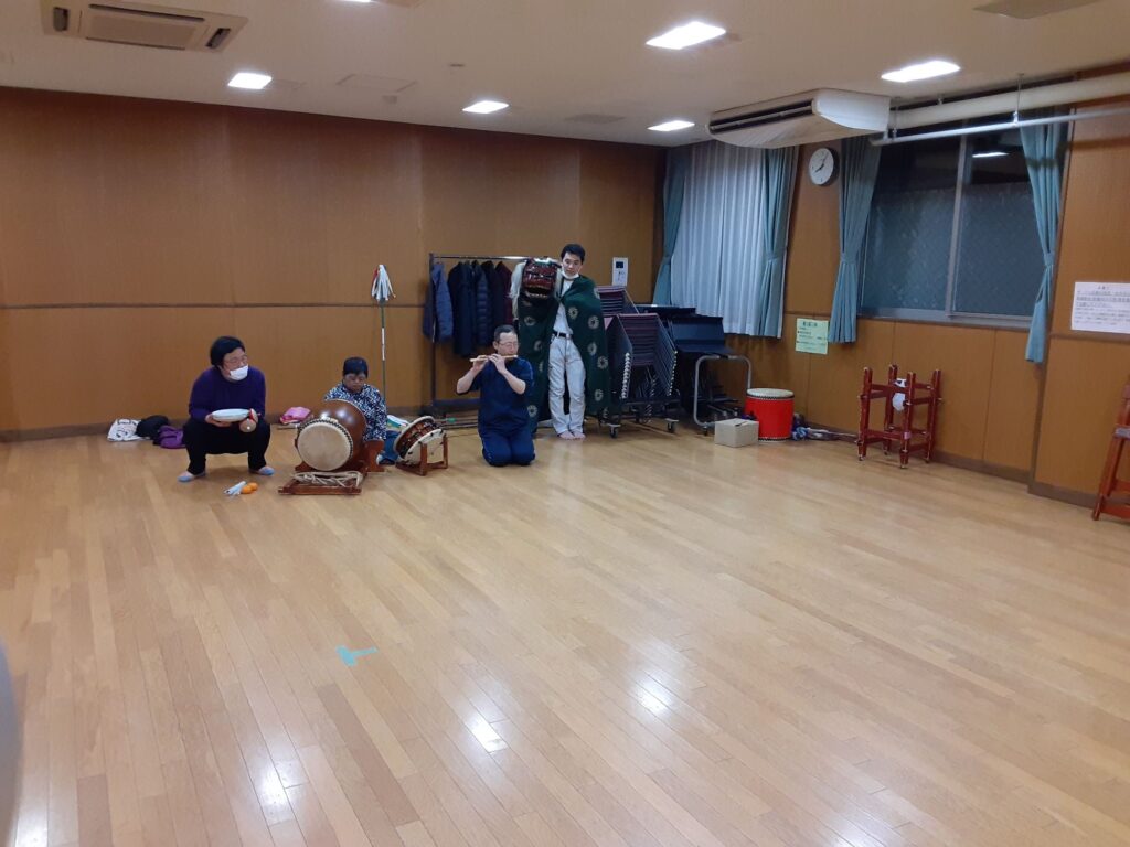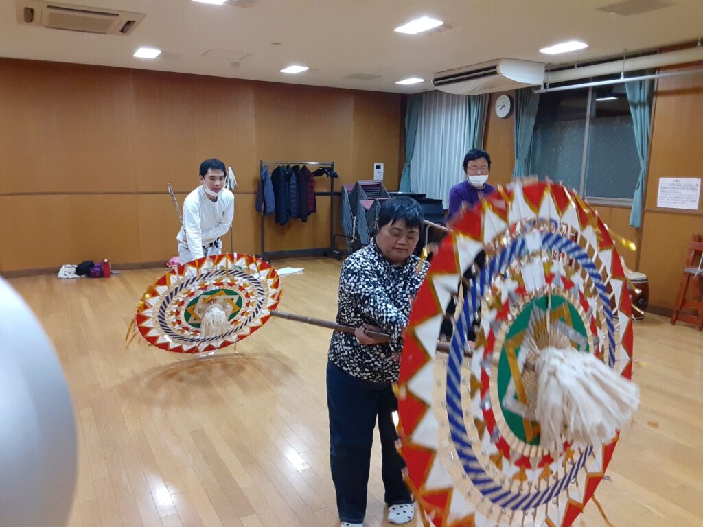 今日は、私を含め4人で練習しました。指笛、エイサー、傘踊り、獅子舞(一人立ち)、仮面太鼓そして大蛇、秩父屋台囃子の練習をしました。
