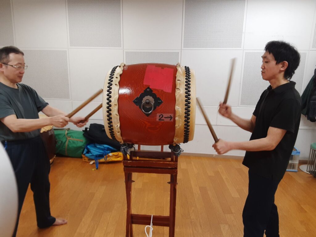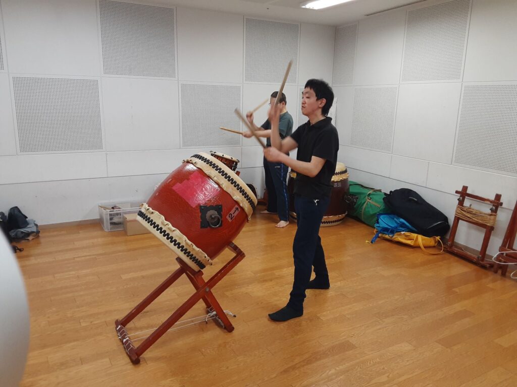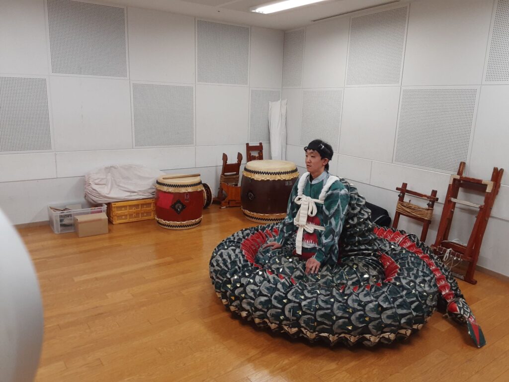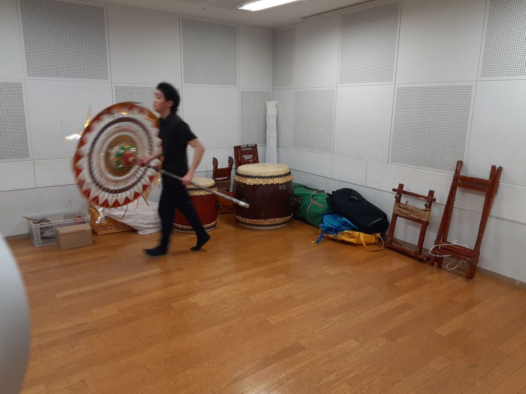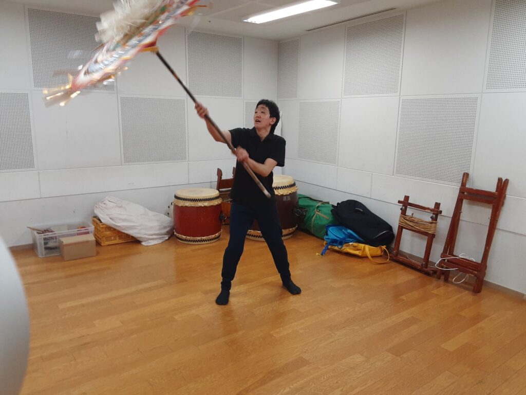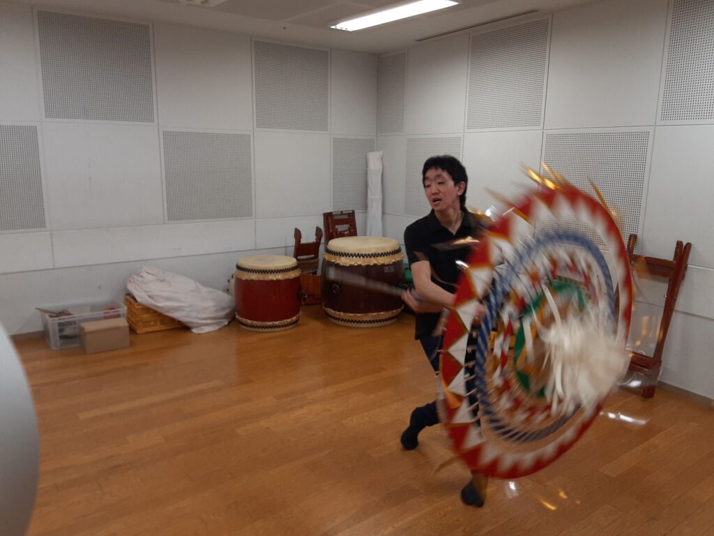 今日は、メンバー一人と私の2人で練習しました。指笛、エイサー、八丈島太鼓、傘踊り、ぶち合わせ太鼓、仮面太鼓そして大蛇、三宅島太鼓、ソーラン節、秩父屋台囃子、荒馬踊り、独楽回しの練習をしました。