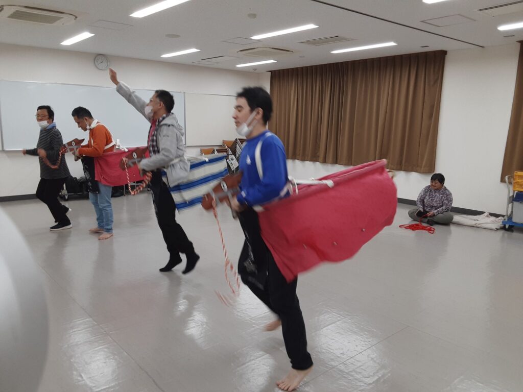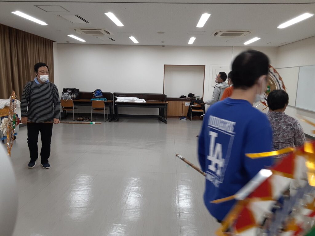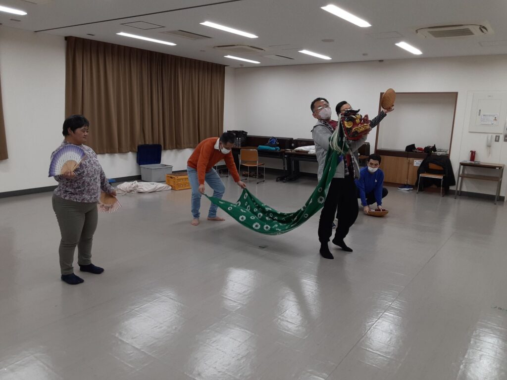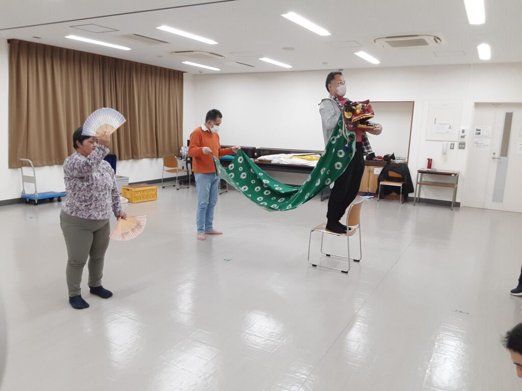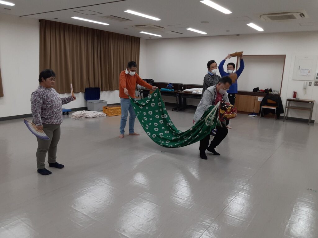 今日は、私を含め4人で練習しました。指笛、エイサー、傘踊り、獅子舞(一人立ち)、仮面太鼓そして大蛇、秩父屋台囃子の練習をしました。