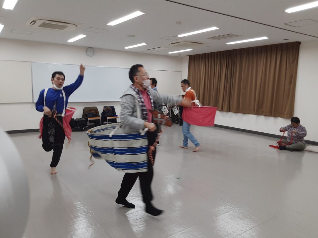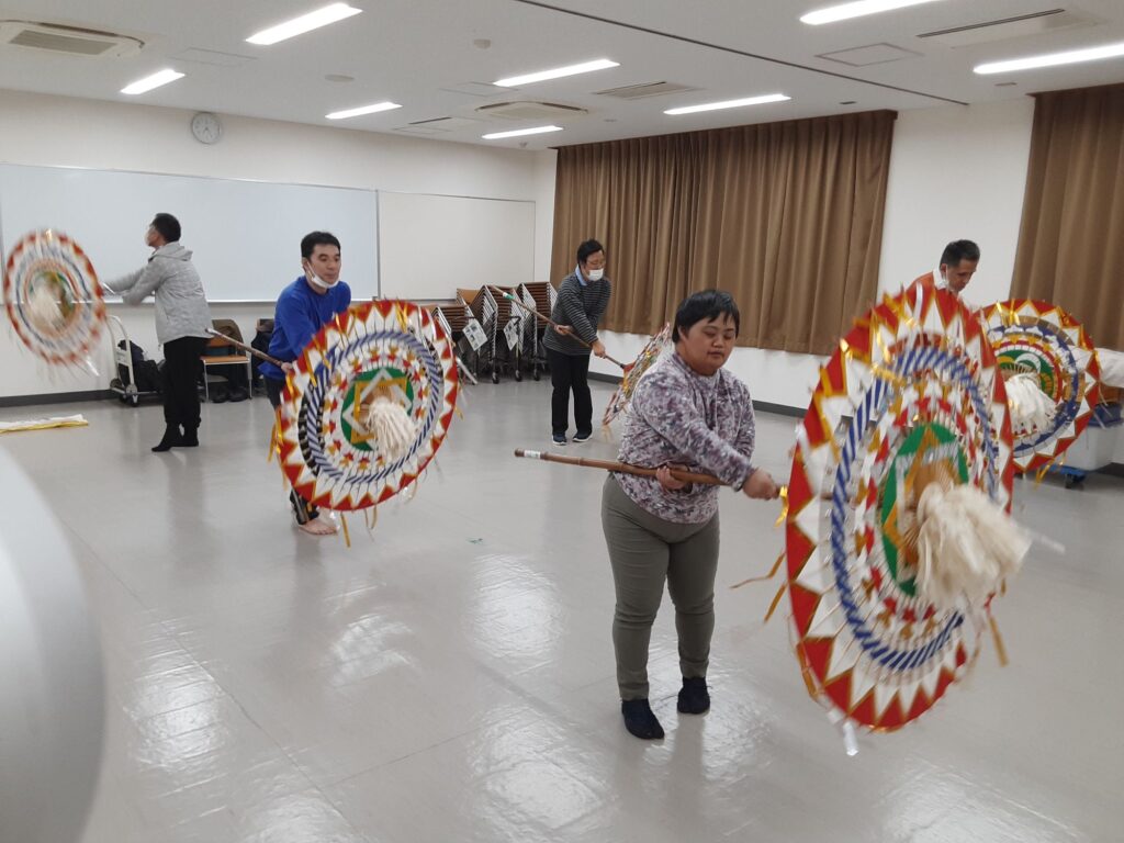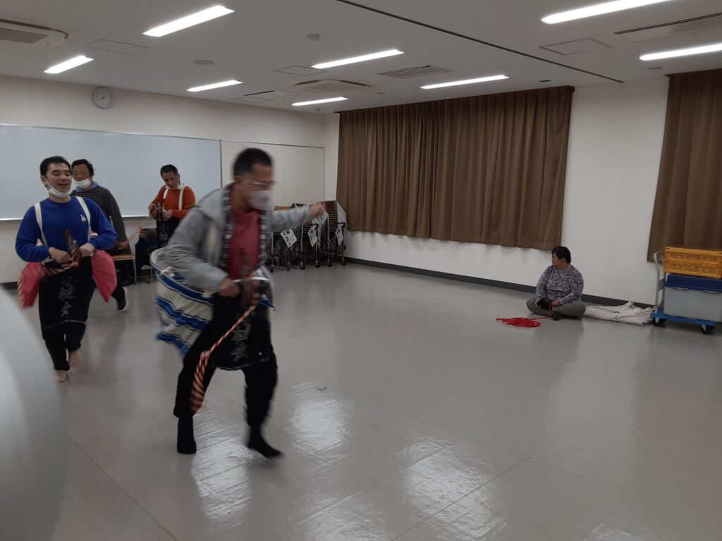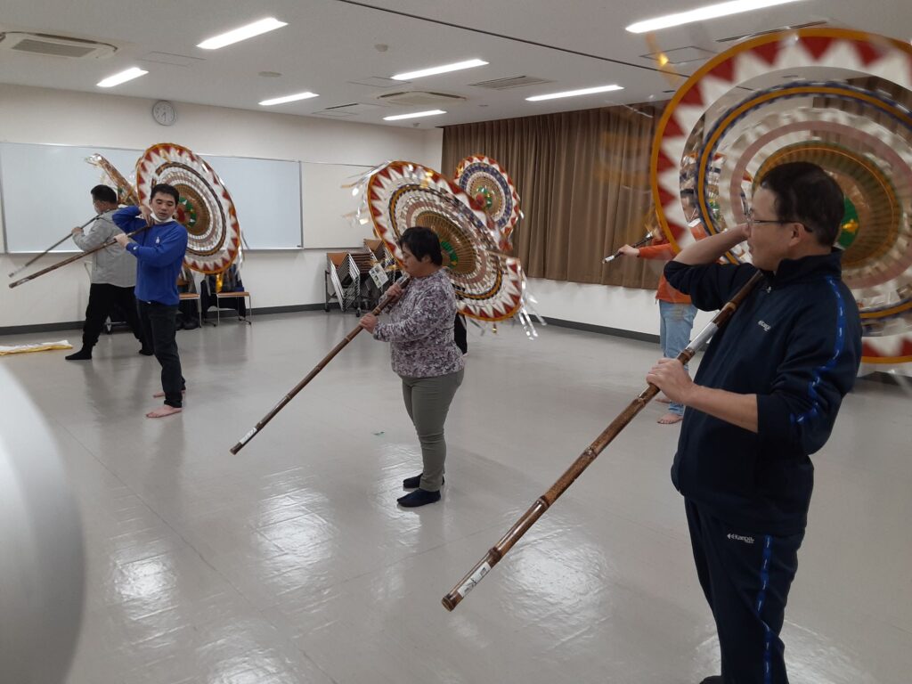 今日は、私を含め6人で練習しました。指笛、エイサー、傘踊り、荒馬踊り、ぶち合わせ太鼓、ソーラン節の練習をしました。