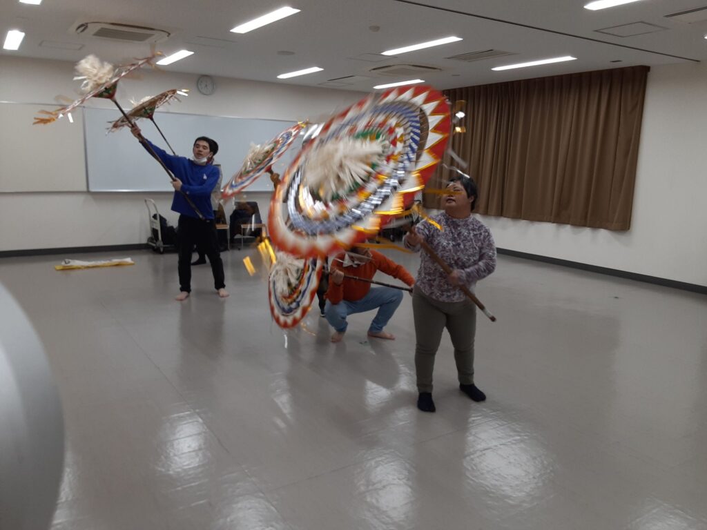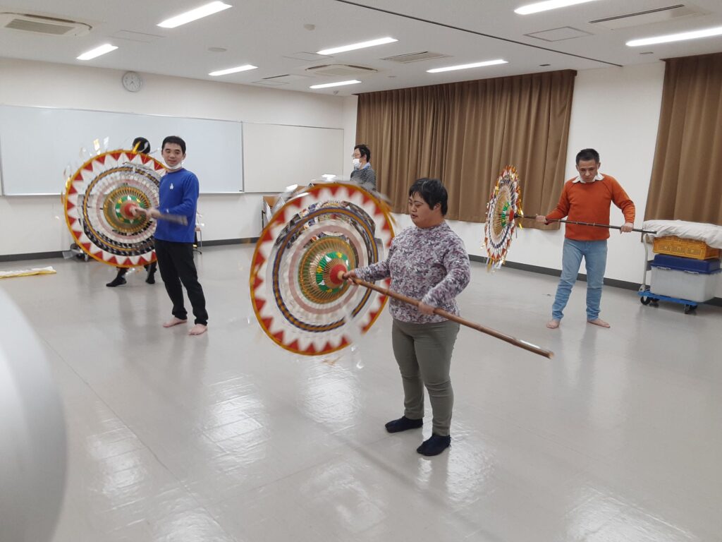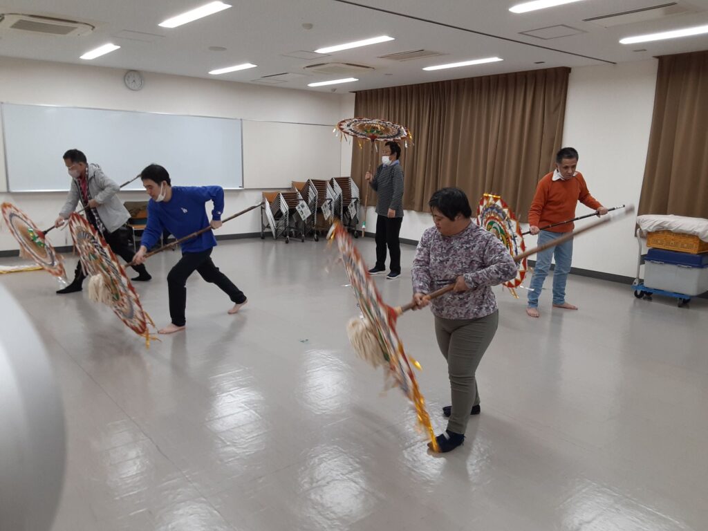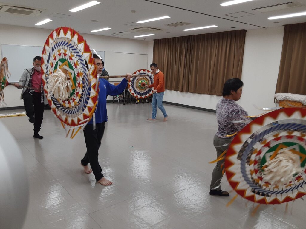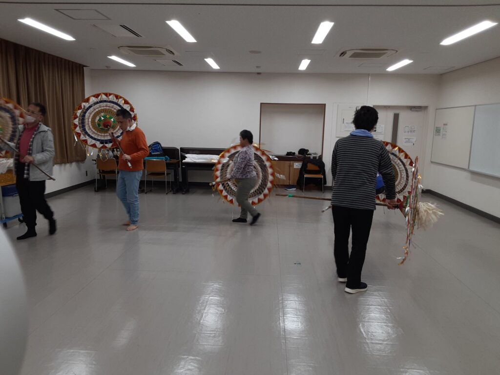 今日は、私を含め6人で練習しました。指笛、エイサー、傘踊り、荒馬踊り、ぶち合わせ太鼓、ソーラン節の練習をしました。