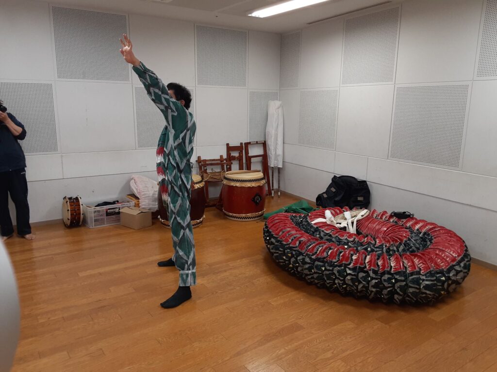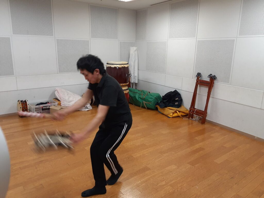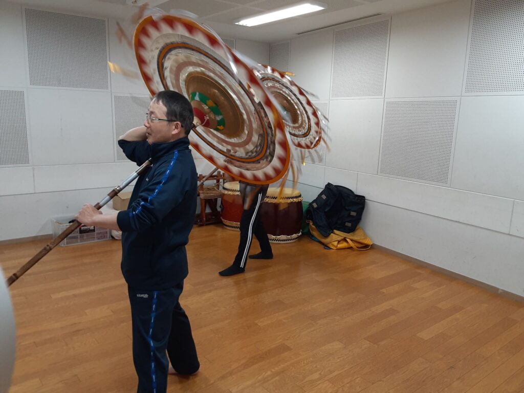今日は、メンバー一人と私の2人で練習しました。傘踊り、ソーラン節、秩父屋台囃子、ぶち合わせ太鼓、八丈島太鼓の練習をしました。尚、今日は十二回目の鎌ヶ谷市東部学習センターでの練習となりました。
