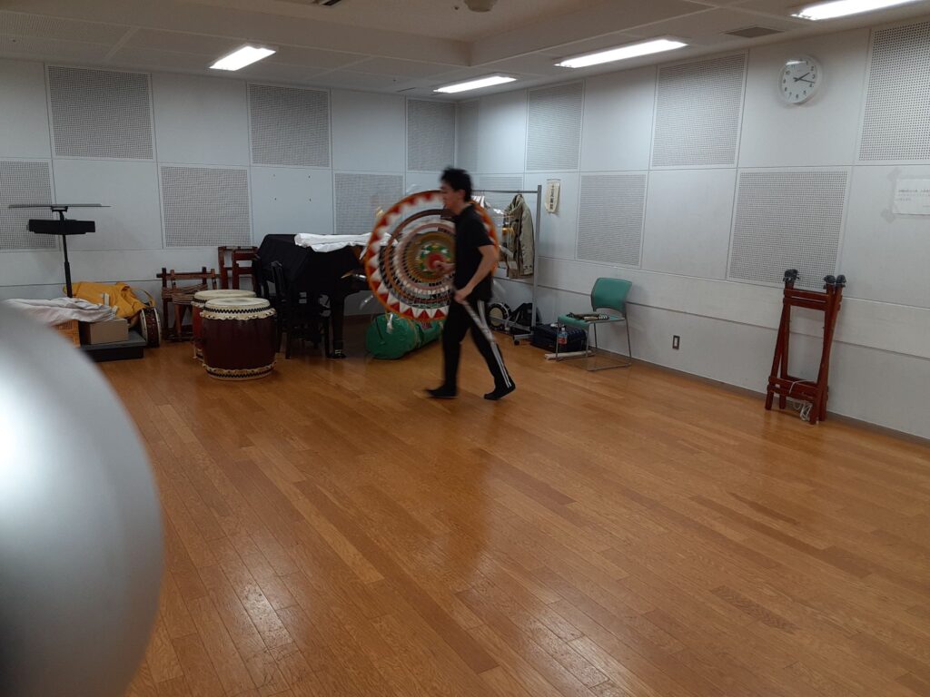 今日は、メンバー一人と私の2人で練習しました。指笛、エイサー、八丈島太鼓、傘踊り、三宅島太鼓、仮面太鼓そして大蛇、ぶち合わせ太鼓、荒馬踊り、秩父屋台囃子、ソーラン節、独楽回しの練習をしました。
