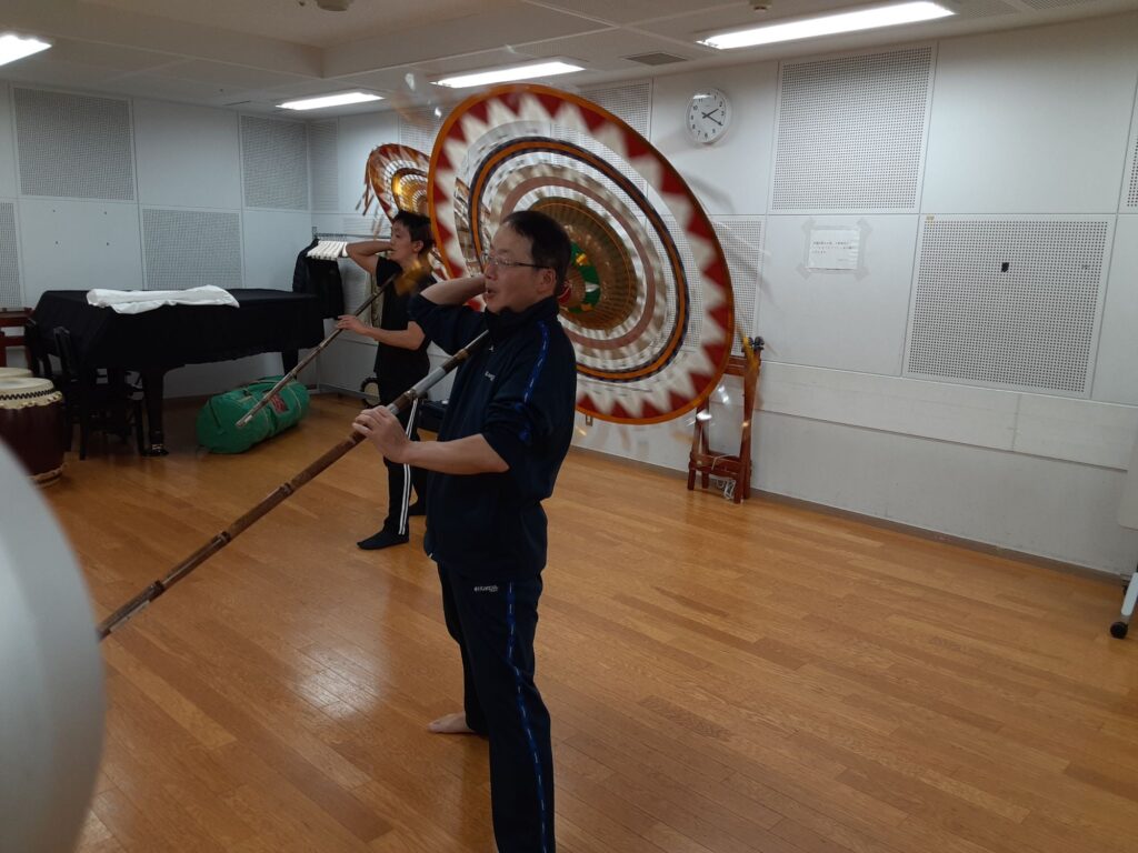 今日は、私を含め3人で練習しました。指笛、エイサー、傘踊り、独楽回し、秩父屋台囃子の鉦の練習をしました。