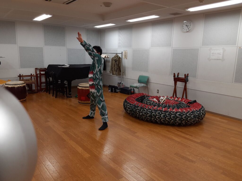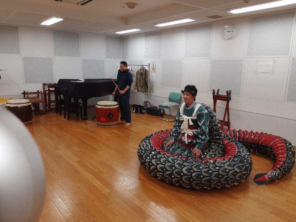 今日は、メンバー一人と私の2人で練習しました。指笛、エイサー、三宅島太鼓、荒馬踊り、ぶち合わせ太鼓、仮面太鼓そして大蛇、秩父屋台囃子、ソーラン節、八丈島太鼓、傘踊りの練習をしました。